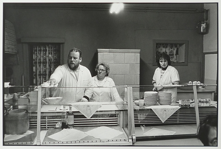 Karl-Ludwig Lange. Potsdam 1990 Sommer 2016 Verkaufs-Ausstellung in unseren Räumen mit Fotografien von Karl Ludwig-Lange.Wir zeigen seine besonderen Bilder von Potsdam, aufgenommen im Jahr 1990. Karl-Ludwig Lange, Potsdam, Central-Imbiss 8.1.90. Vintage, Silbergelatine.